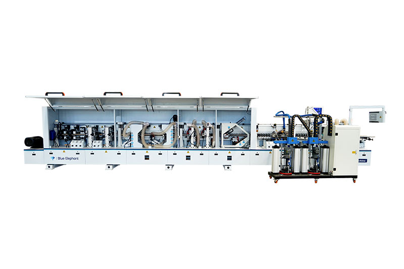 功能:前分離-預(yù)銑-上膠鍋+快速溶膠六輪壓貼1-下膠鍋+六輪壓貼2-快速齊頭-氣動精修1-氣動精修2-四頭跟蹤倒角-氣動刮邊1-氣動刮邊2-斷絲+平刮-后清洗-拋光1-拋光2