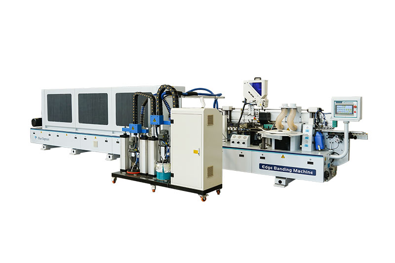 E-70JDSR全自動(dòng)封邊機(jī)功能:前分離-預(yù)銑-涂膠貼邊1-涂膠貼邊2-齊頭-手動(dòng)粗修-手動(dòng)精修-跟蹤倒角-刮邊-平刮-后清洗-拋光1-拋光2